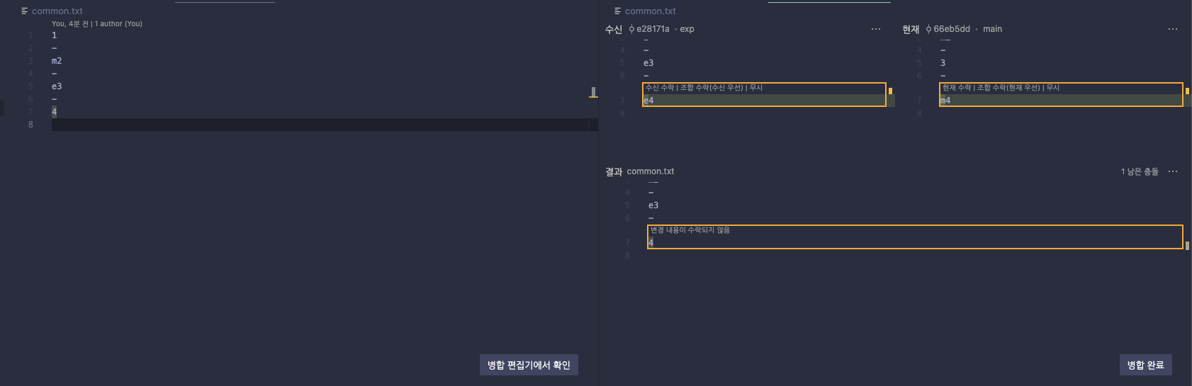 - 수정한 부분은 어떤 부분이 수정되었는 지 확인할 수 있다.