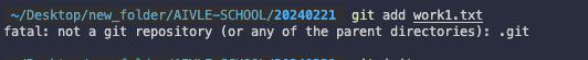 - 커밋을 진행해보려 했지만, 오류 발생! 이유는 git repository를 초기화 해주지 않았기 때문이다.