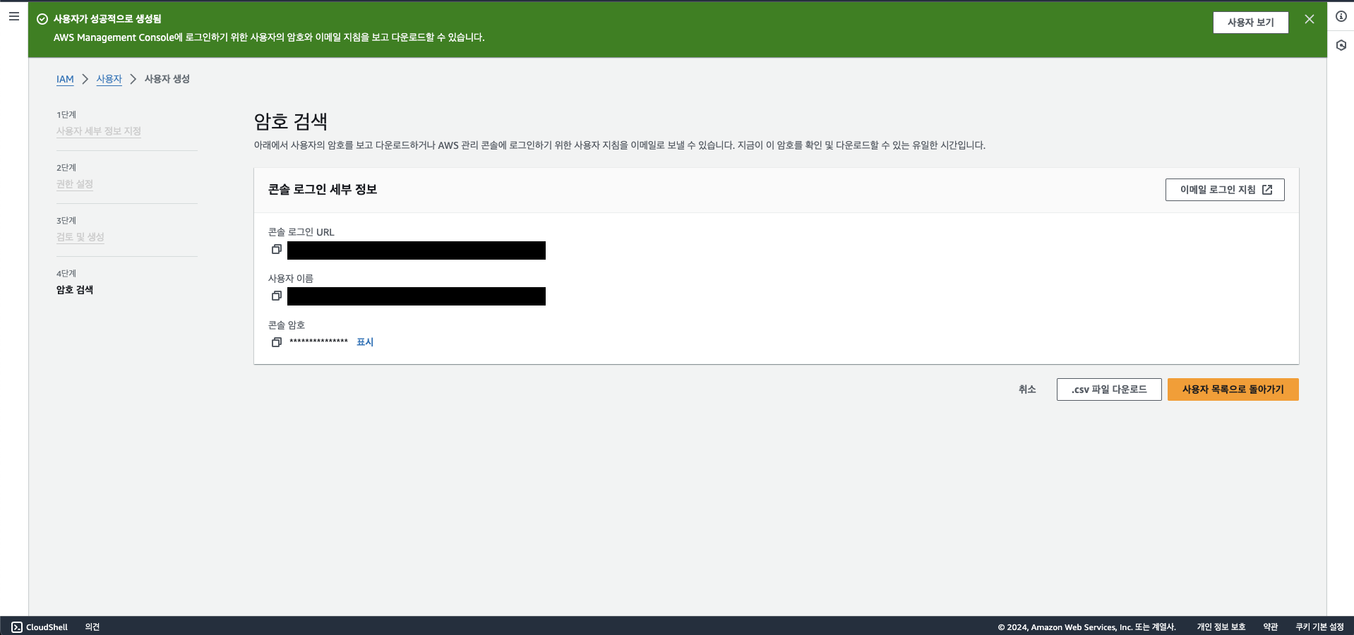 콘솔 암호 꼭. 꼭. 복사해 놓으셔야 합니다.