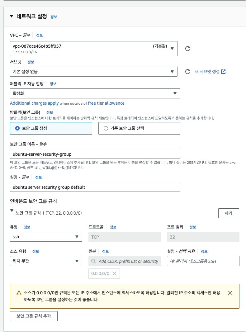[추후에 보안그룹 관련해서는 따로 포스팅 예정]