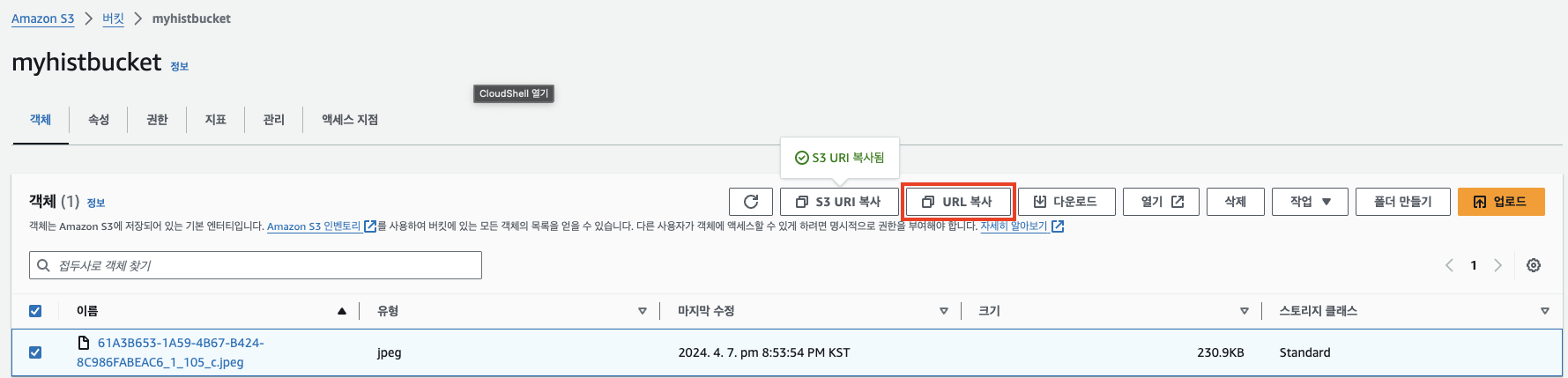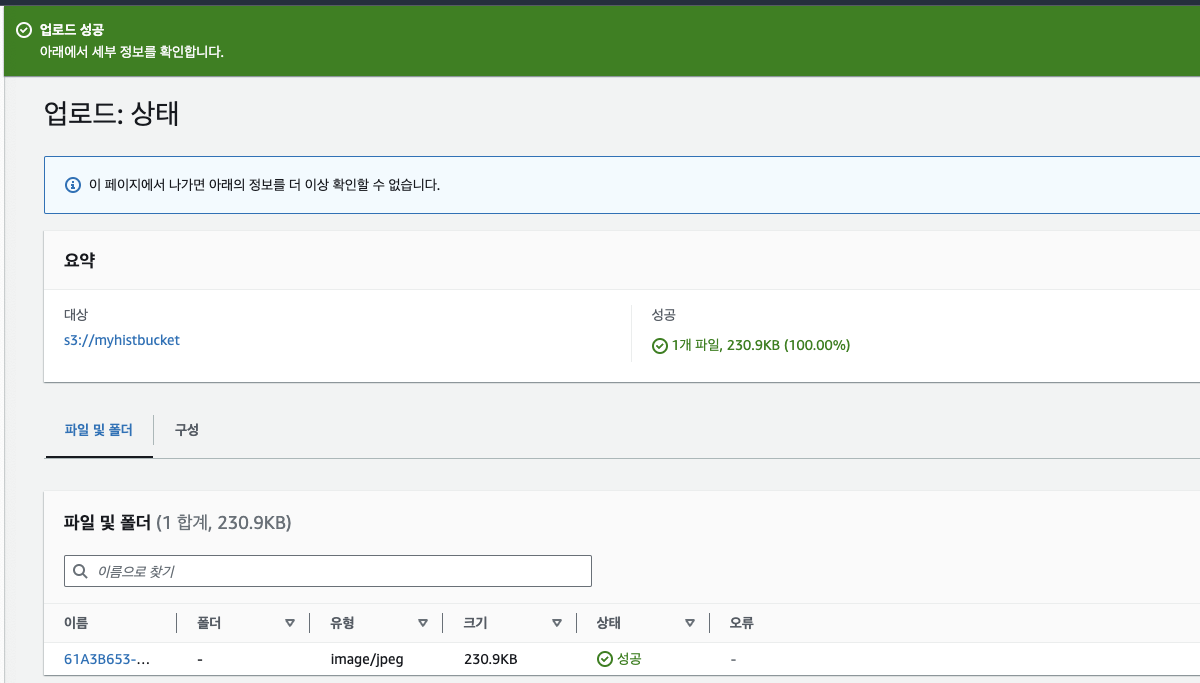 이렇게 성공 메세지가 뜨면서 업로드 된 모습을 확인할 수 있었습니다.
