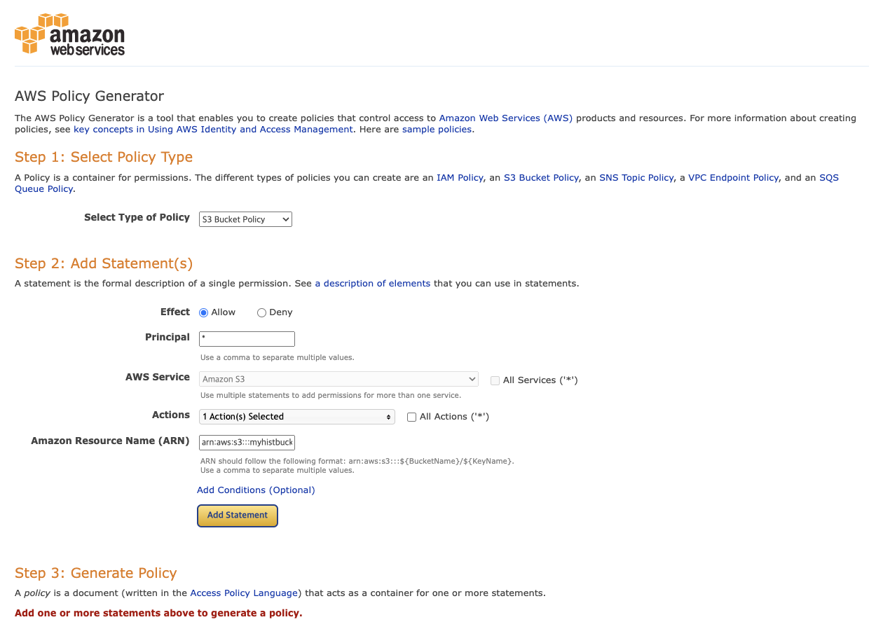 "Resource": "arn:aws:s3:::myhistbucket/*",