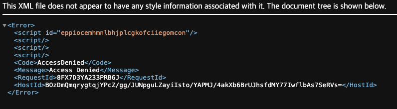 여기서 이미지를 웹에서 확인하고 싶어서 URL을 복사해서 주소창에 쳤더니 아래와 같은 에러메시지가 발생하는 것을 확인할 수 있습니다.