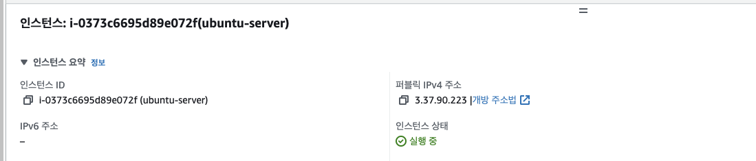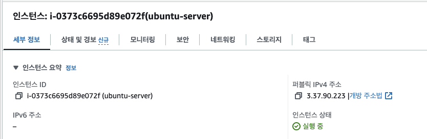 그러면 여기 퍼블릭 IPv4 주소가 할당받은 Elastic IP로 바뀐 것을 확인할 수 있습니다.