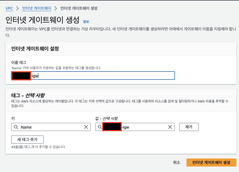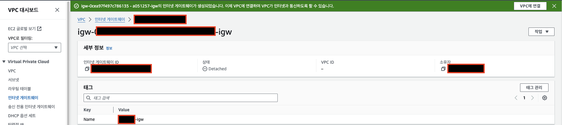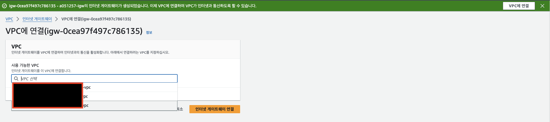 6. 인터넷 게이트웨이에 VPC를 연결합니다.