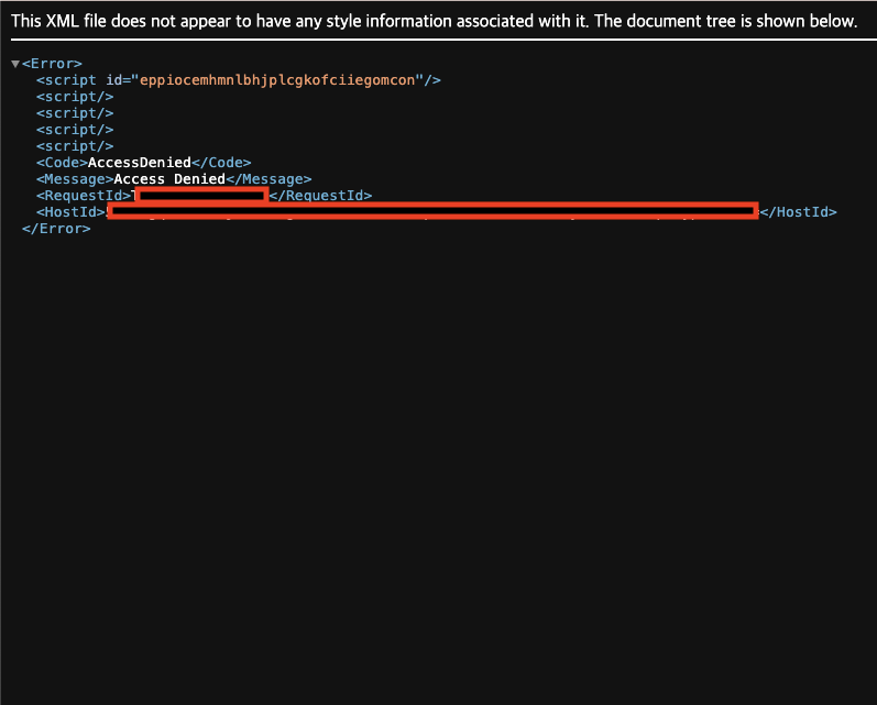 c. AccessDenied가 뜨는 것을 확인할 수 있습니다. 버킷에 바로 접근은 불가능합니다. 그렇기 때문에 Cloudfront를 이용해서 퍼블릭 접근이 불가능한 s3 버킷에 엑세스 할 수 있게 할 것입니다.
