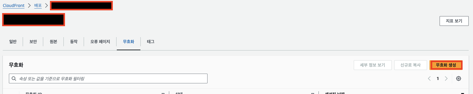 1. CloudFront로 이동한 뒤 무효화 생성을 클릭합니다.