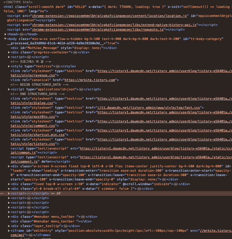 사실상.. 예전부터 실시간으로 티스토리에 블로그 올리면 자동으로 개인 홈페이지에도 나오면 좋겠다는 생각을 많이 했슴다. 근데 이게 티스토리 API가 막히면서 되게 복잡해졌다고 해요. 그래서 저는 원초적이고 가장 기본적인 방법인 크롤링을 활용해보면 좋을 것 같다고 생각했어요.