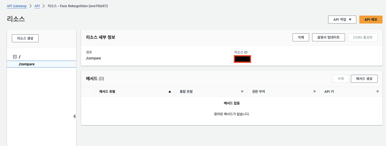 1. 생성한 리소스(/compare)를 선택합니다.