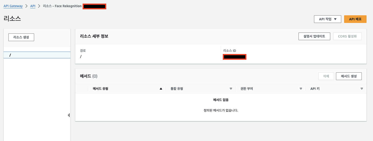 2. API 이름(Face Rekognition)을 입력하고 API 생성을 클릭합니다.