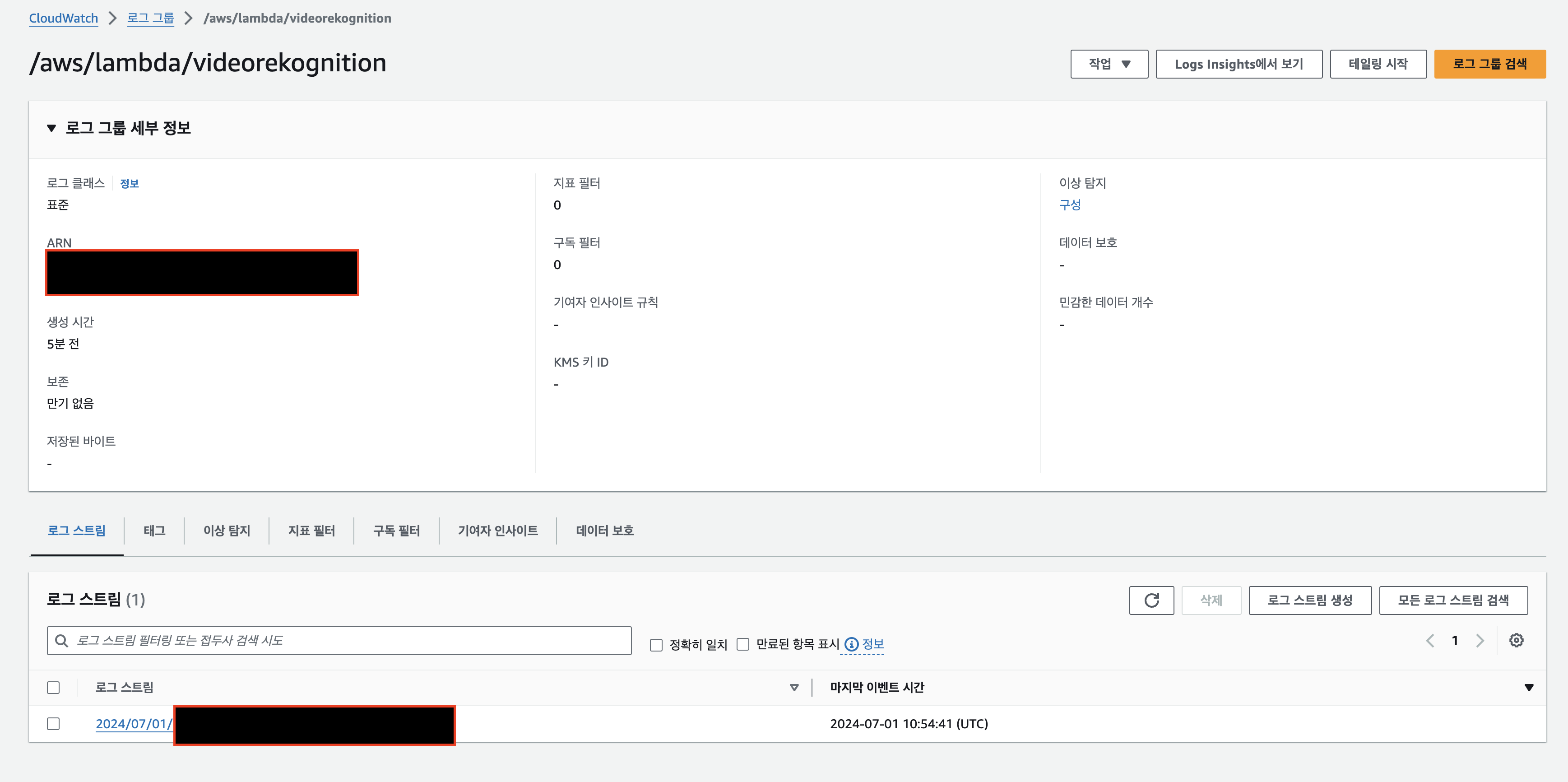 성공적으로 로그그룹이 생성된 것을 확인할 수 있습니다. 결국.. 다시한번 느낍니다.. Lambda를 사용할 때에는 권한 설정이 필수적이고, 항상 조심해야 한다는 것을..