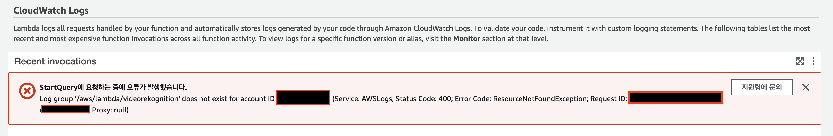 Lambda 함수 테스트 중에 어디서 오류가 생기는 지 확인하기 위해서 cloudwatch log를 보려고 똭! 켰는데, 웬걸.. 이런 오류가 떴습니다.. 그래서 뭐가 문제인지 열심히 찾아보는 중 지원팀에 문의 버튼도 있길래 호다닥 눌렀는데 별로 효과는 없어서 바로 구글링 시작!